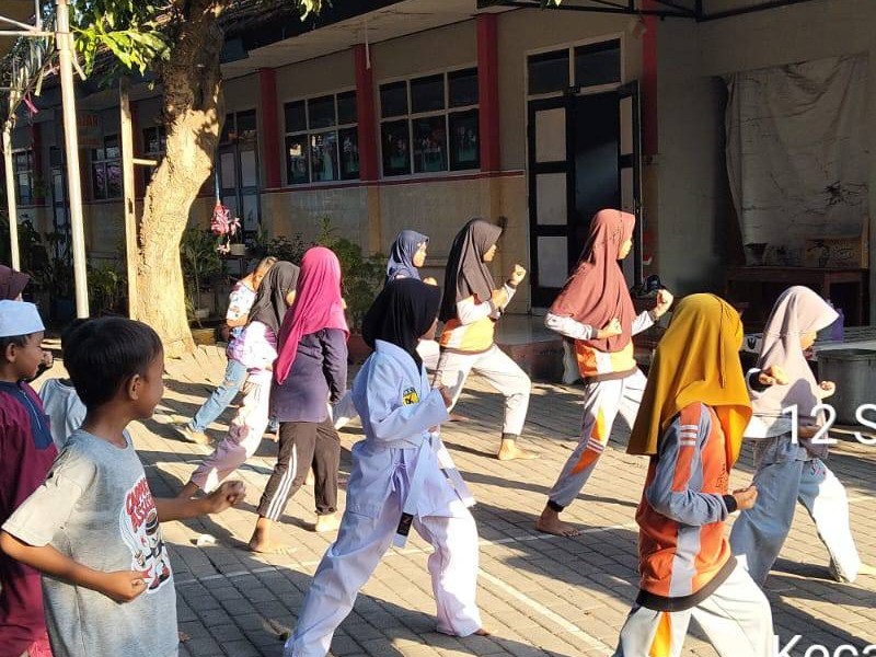 beberapa siswa mengikuti ekstrakurikuler karate di SD Negeri 9 Patokan